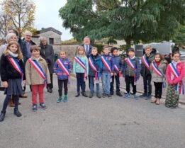 Au cours des cérémonie émouvantes au cimetière, à l’église et dans la cour de la Mairie, la participation du Conseil Municipal junior a été particulièrement remarquée.