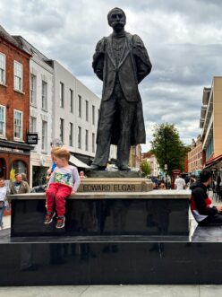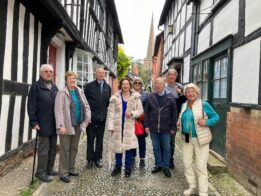 Après le lunch dans les jardins de la cathédrale, visite de la ville en compagnie de Robert Loveless : statue et maisons d’Edgard Elgar, High Street, le Guildhall, les magnifiques maisons « black and white », le musée de manufacture de porcelaine de Worcester et sa boutique, etc..