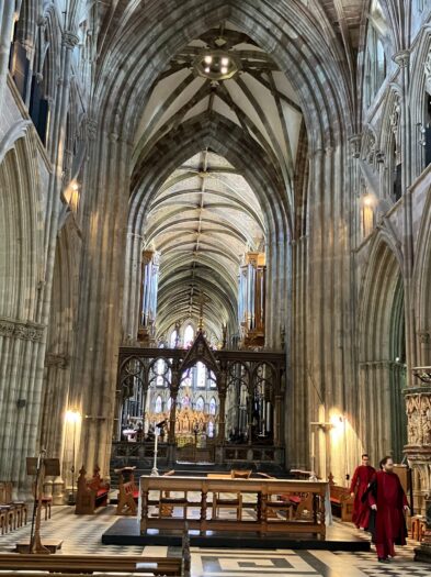 La messe a été suivie d’un café dans le cloître puis de la visite détaillée des richesses de la cathédrale par le Doyen, Révérend Chanoine Stephen Edwards.  Impressionnante est  la quantité et la qualité des trésors dont regorge cette cathédrale ! Boiseries, vitraux, orgues, sculptures, tableaux, sépultures royales, cloître, crypte  .. Un grand merci pour ce très beau moment !