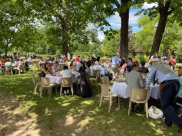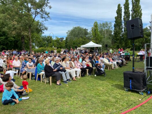 Dimanche 26, messe en plein air au cours de laquelle les intentions de prières ont été lues par un représentant de chaque ville jumelée, apéritif offert par les paroisses, puis garden party très conviviale et ensoleillée qui a été très appréciée.
