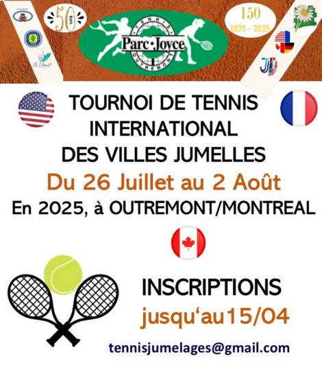 Pour fêter le 50ème anniversaire du jumelage entre Outremont (arrondissement de Montréal) et Le Vésinet, et les 150 ans d’existence des 2 communes, les comités de jumelages et clubs de tennis des trois villes jumelles française et nord-américaines organisent un tournoi de tennis international qui se veut pérenne.