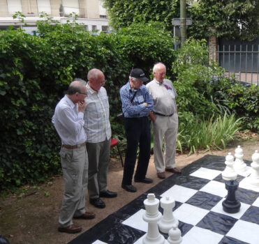 Worcester City Chess Club players had an afternoon of chess in France as part of the celebrations of the 20th anniversary of the twinning between Le Vésinet and Worcester. The Worcester players were Ray Collett, Pat Greenowand Roger Yates. The French Club d’échecs du Vésinet arranged an open air consultation match in the garden and a small international Blitz tournament at Le Vésinet’s Maison du Combattant, a community hall honouring soldiers who fell in the Franco-Prussian war.