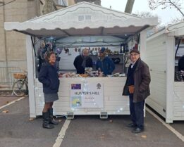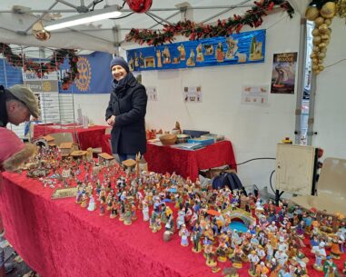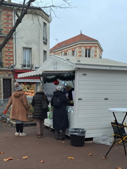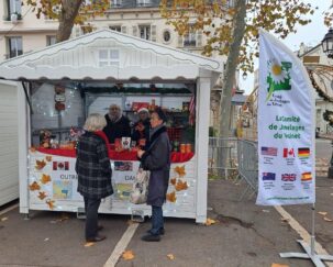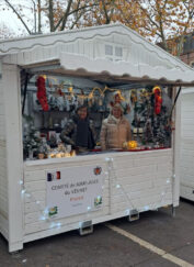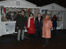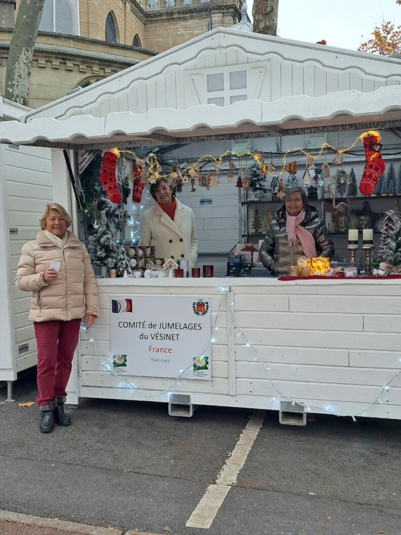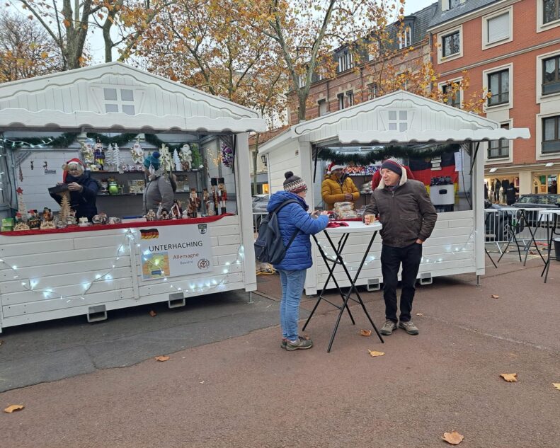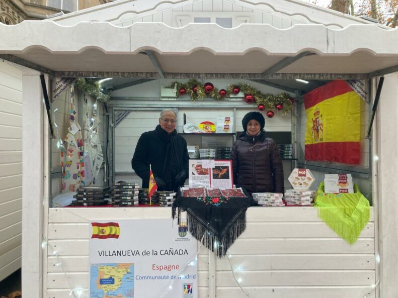 Nous avons eu le plaisir d’accueillir cette année des délégations de 2 de nos villes jumelles venues contribuer à l’animation de notre marché et nous régaler de leurs produits et décorations de Noël : 4 personnes d’Unterhaching et 2 personnes de Villanueva de la Cañada, dont le nouveau président du Comité de jumelage espagnol Javier Atienza.