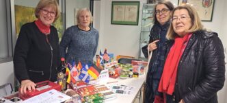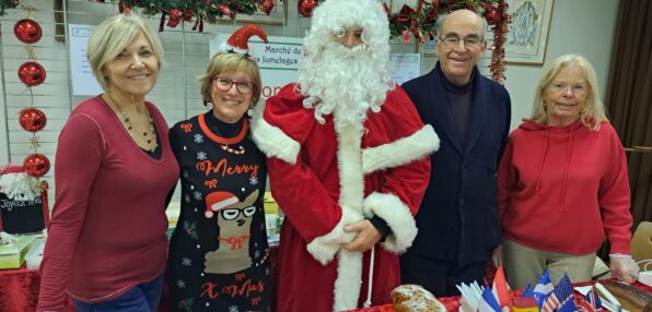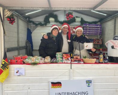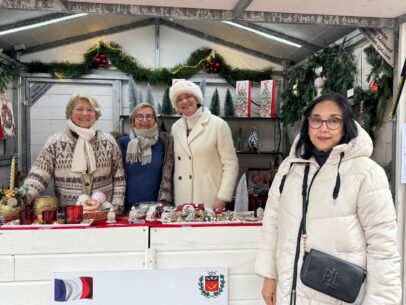 Cette année encore, nous avons eu le plaisir d’accueillir des délégations de deux de nos villes jumelles venues contribuer à l’animation de notre marché et nous régaler de leurs produits et décorations de Noël : 3 personnes d’Unterhaching et 2 personnes de Villanueva de la Cañada.