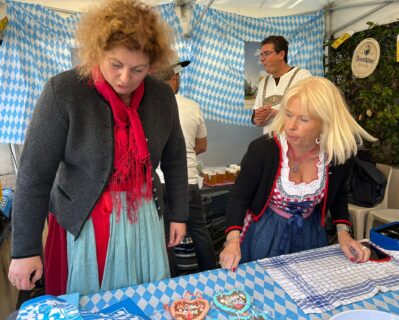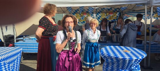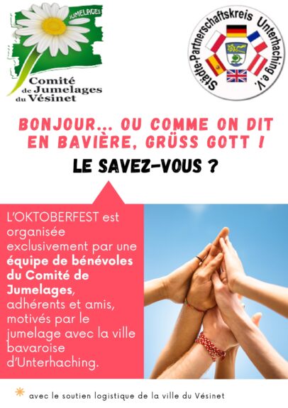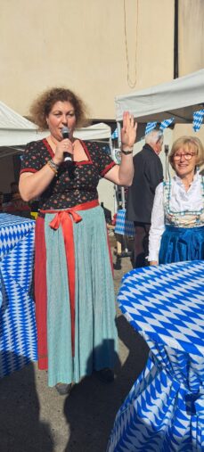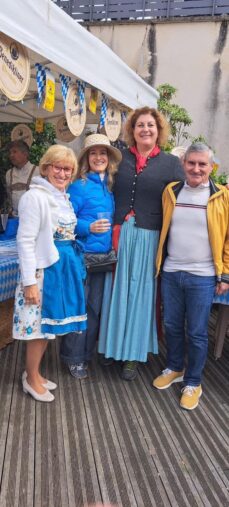 Présentation d’Anne-Marie BORDERIE, Présidente du Comité de Jumelages, d’Edith FISCHOF, organisatrice de la fête et Vice-Présidente du Comité de Jumelages, et de Renate FICHTINGER, la responsable à Unterhaching (près de Munich) des échanges et activités avec le Vésinet, venue spécialement pour le week-end, pour nous aider.