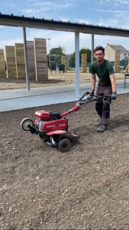 * Travaillé la terre au stade des Merlettes, ameubli, avec le tracteur, moteur vineuse, râteau, binette…