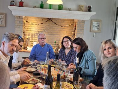 Diner au Château des Merlettes le deuxième soir : merci à tous nos invités et contributeurs pour la mise en place, la décoration, les délicieux plats, salades et gâteaux, le rangement et la vaisselle après la fête .. encore un beau travail d’équipe !