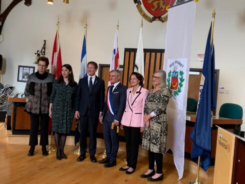Le Maire du Vésinet, Bruno Coradetti, avait fait spécialement le voyage pour répondre à l’invitation de Laurent Desbois, Maire d’Outremont, qui avait lui-même fait le déplacement au Vésinet en juin.